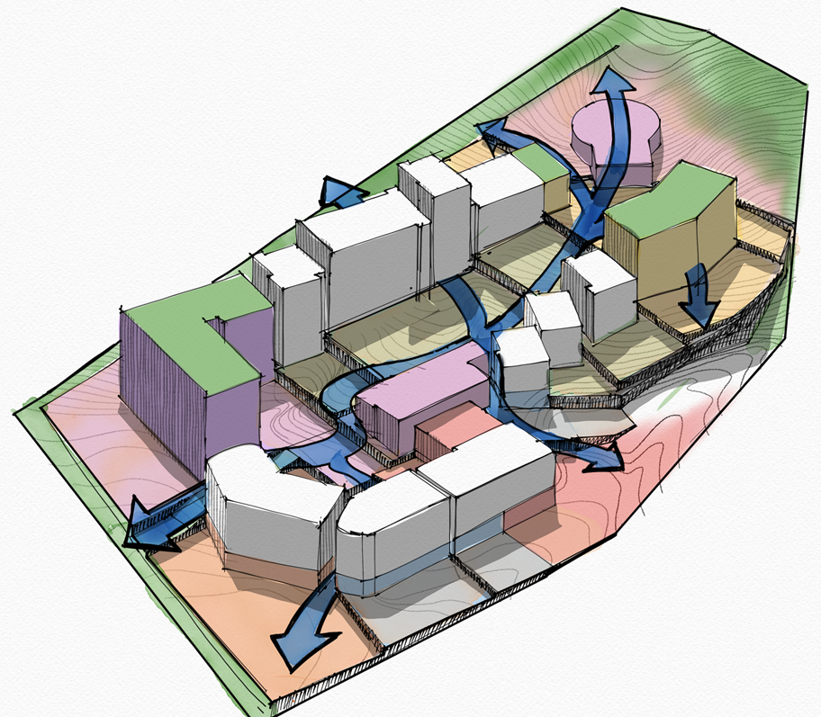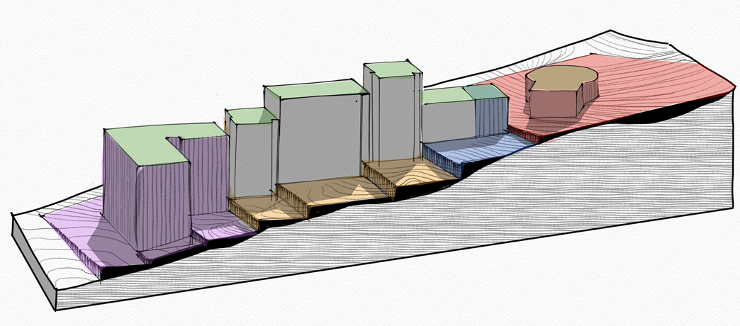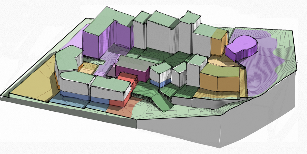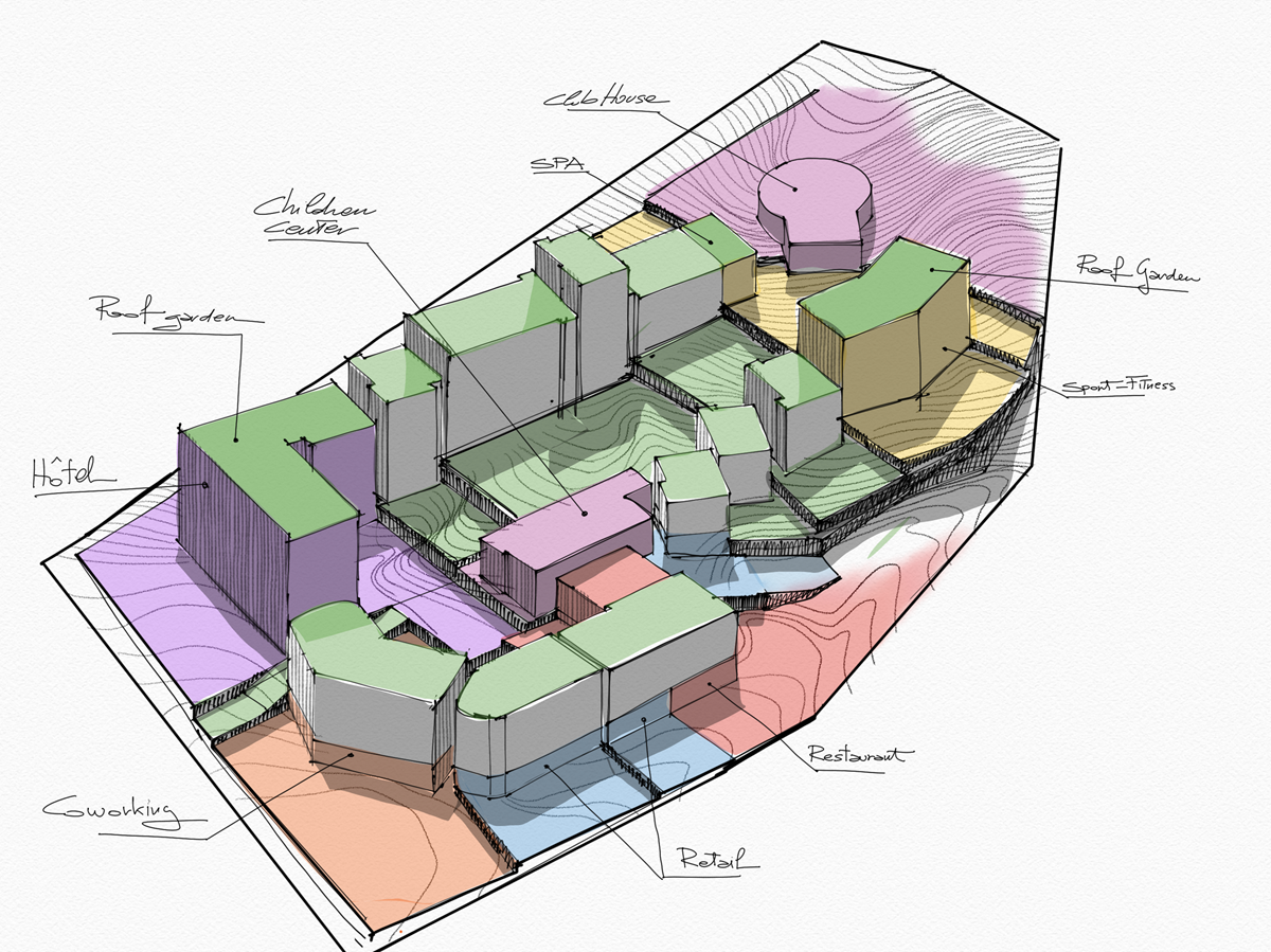 Concept e Studio di Fattibilità per la progettazione di uno sviluppo immobiliare (residenziale-commerciale-turistico-sportivo) su una delle colline di Phuket con un dislivello interno di oltre 50 metri.